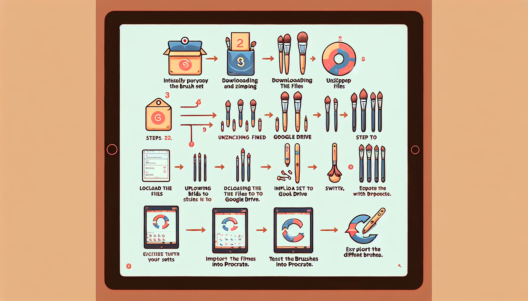 Now that the files are in Google Drive, it's time to switch to your iPad. Open Procreate and follow these steps: