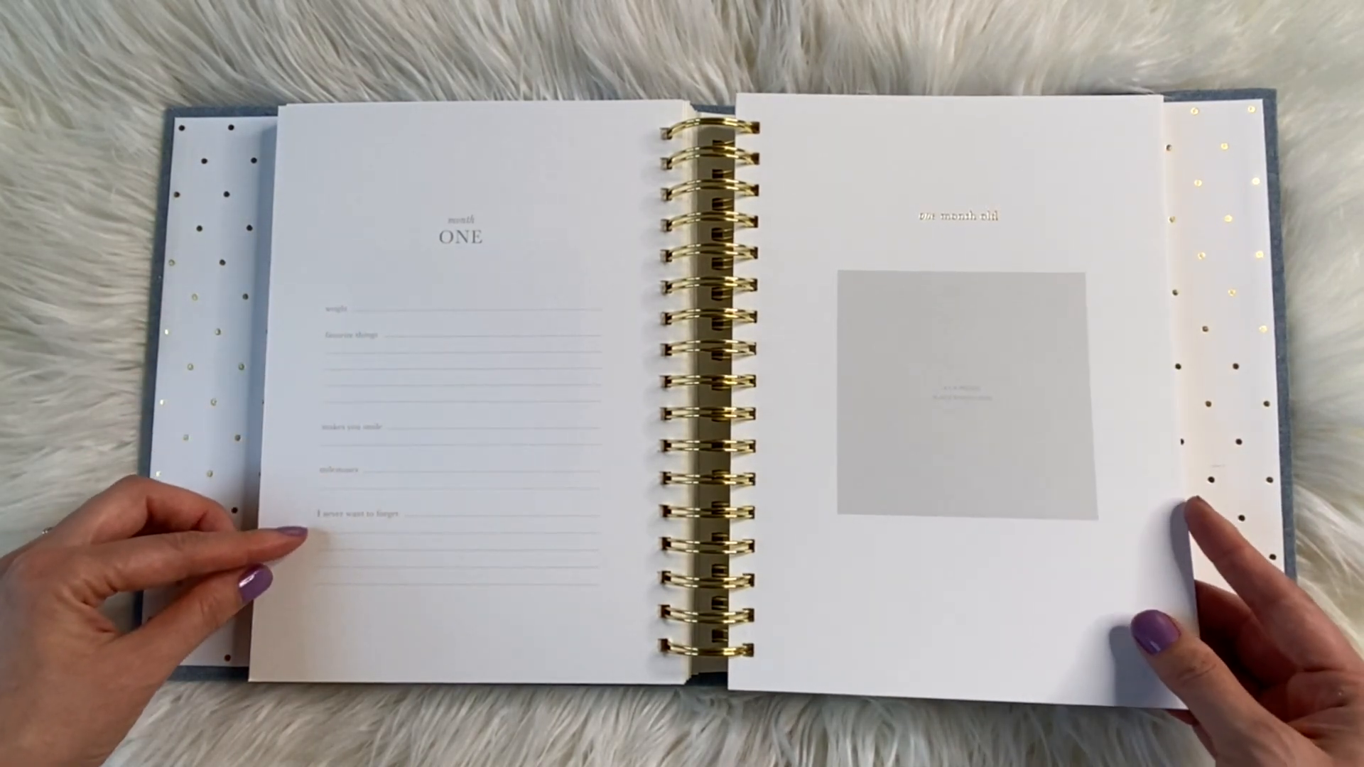 Monthly Milestones: A dedicated section for each month of the first year, where parents can record favorite things and memorable moments.