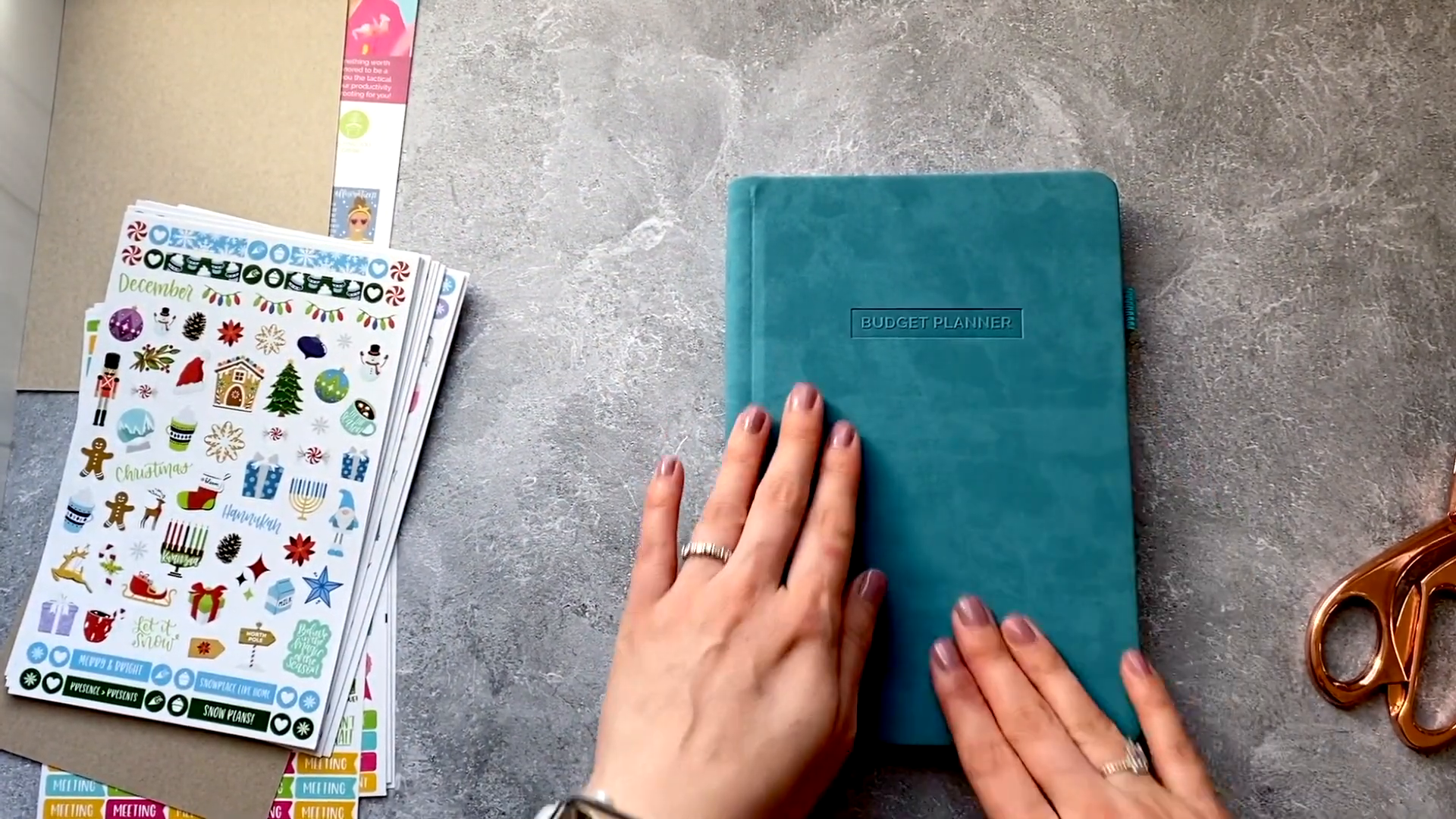 Upon unboxing, you are greeted with a delightful assortment of items. The package includes cute postcards, a productivity sticker pack, and, of course, the budget planner itself. The initial impressions are positive, with the planner feeling soft and velvety to the touch, adding to its aesthetic appeal.