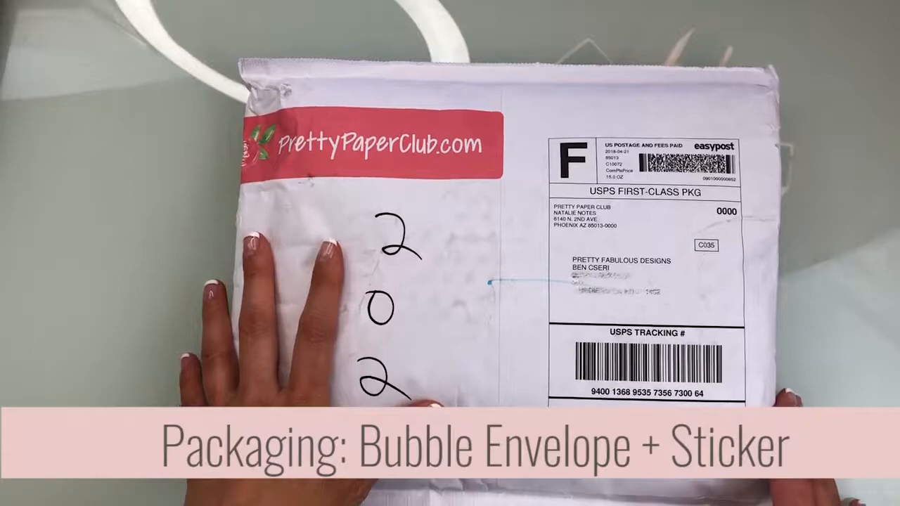 Let’s get into the fun part: unboxing the Pretty Paper Club! The envelope arrived with a sticker of their logo, which added a nice touch to the overall presentation. However, I must say, the shipping took quite a while. If you order by the 14th, it’s supposed to ship around the 20th, but my envelope didn’t ship until the 23rd and took another week to arrive. It was sent via USPS first-class, which might explain the delay.