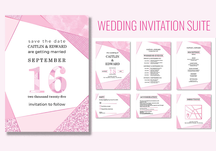 Are you ready to take your wedding invitation business to the next level? These beautifully designed wedding invitation templates are here to help you shine! 3 Wedding Invitation Suite Templates ready to use